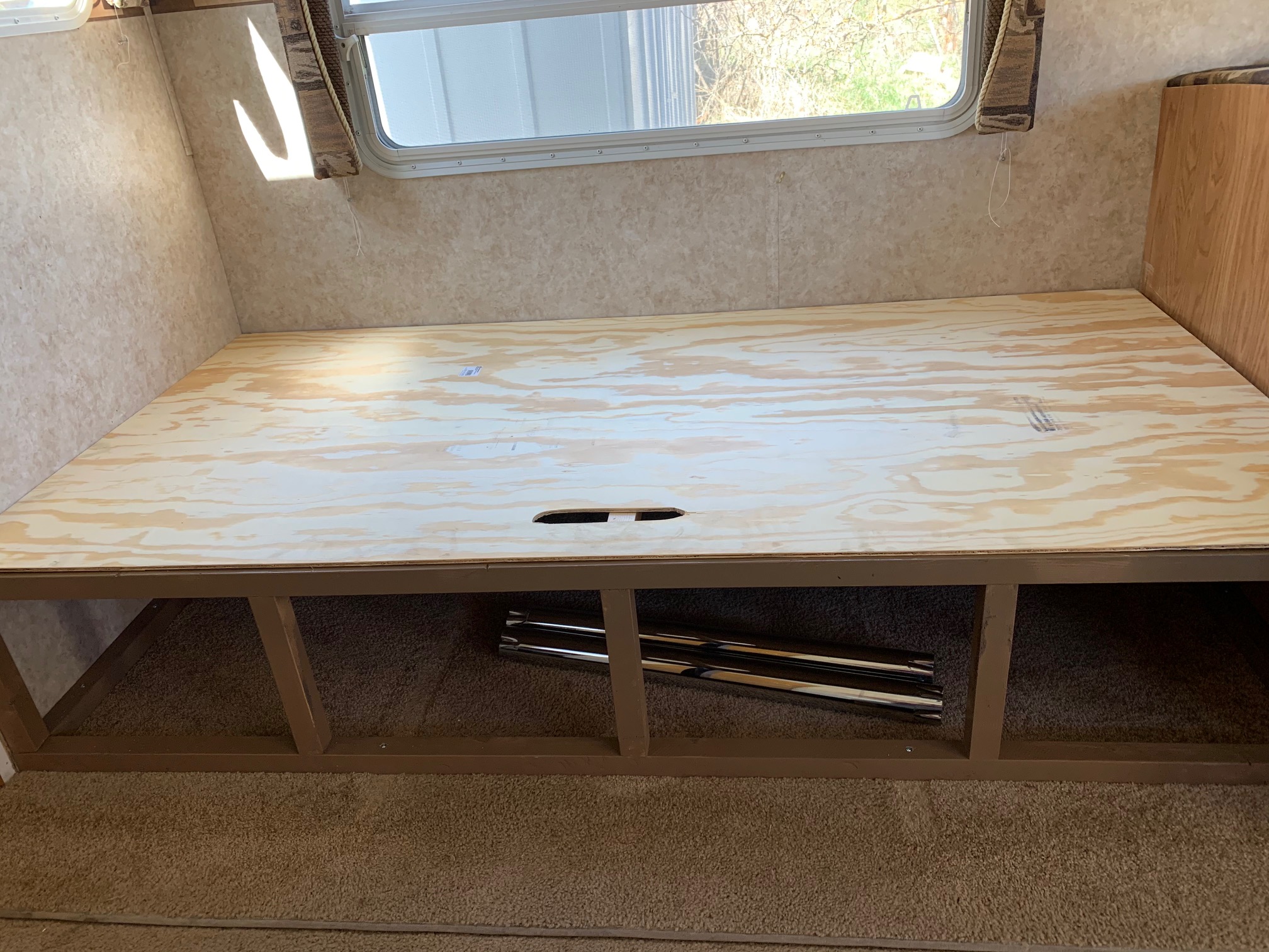 It’s incredible! And since we weren’t using the couch as a bed before, we still have the same amount of sleeping space. (The dinette no longer makes down, though someone could sleep on the bench portion if necessary in the future.)There is also more storage, under the new bed.